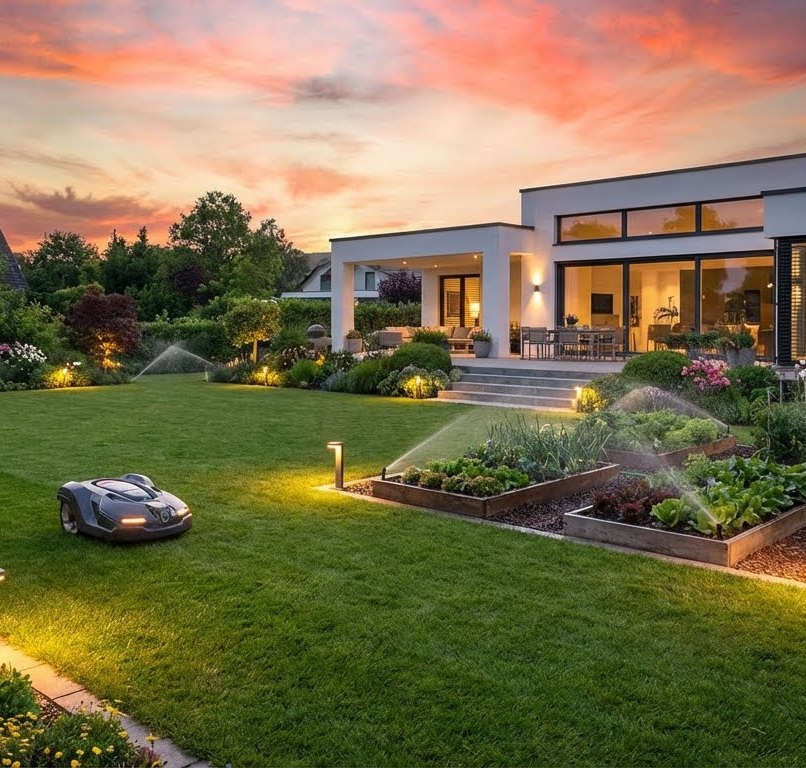 Unser Team verbindet Handwerk, Erfahrung und moderne Technik von der regelmäßigen Pflege über Smart-Bewässerung bis zur kompletten Neugestaltung. Wir kümmern uns ums Draußen, damit Sie drinnen Ruhe haben.